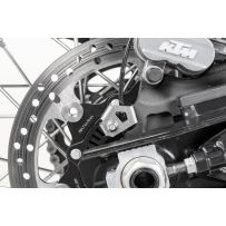 Le protecteur de cylindre de frein Touratech a une plus grande surface et couvre complètement le cylindre de frein, y compris le raccord de la durite de frein. Cela permet de protéger efficacement ce point faible sur les itinéraires hors route.