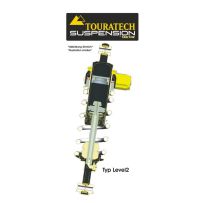 Ce ressort-amortisseur est configuré spécialement pour le guidage de roue avant Telelever de la BMW R1200GS ADV. Les points forts du système Telelever* sont accentués par le comportement de réponse fin du ressort-amortisseur Touratech. La grande plage de réglage nous a permis d'adapter l'avant de la moto même aux exigences d'un voyage lointain extrême avec de longues étapes sur piste et un chargement conséquent. La structure à piston séparateur et l'amortissement à ajustement précis permettent une adaptation et un équilibrage plus performants qu'avec les composants de série des constructeurs de motos. La précontrainte peut être réglée à l'aide d'un outil pour adapter l'équilibre de votre moto, selon le type de ressort-amortisseur utilisé à l'arrière. Le réglage de l'amortissement de ce ressort-amortisseur Level1 permet d'influer sur le palier de traction et de pression afin de répondre à vos exigences personnelles de confort de conduit