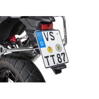La bavette Touratech a été adaptée spécialement aux contours du support de plaque d'immatriculation. Parfaitement intégrée à l'optique du véhicule, elle s'adapte aussi aux plaques plus petites.