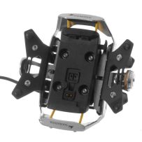 Support de guidon pour le GPS Garmin Tread, créé pour protéger et stabiliser l'appareil même lorsque vous empruntez des itinéraires hors route. En outre, il intègre l'alimentation électrique et un système de verrouillage pour plus de sécurité.