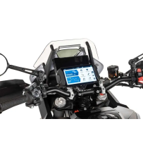 Avec le zumo XT2, Garmin propose un appareil de navigation qui ne laisse rien à désirer. Seule la monture, un peu petite et d'aspect instable, peut être critiquée. Le support de guidon Touratech pour le zumo XT2 est inspiré d´une main qui tient et protège le zumo. Cela permet même à l'appareil de navigation de convenir à une utilisation hors route. La profondeur réduite permet un positionnement individuel et ergonomique sur le véhicule.