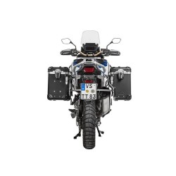Support de coffres robuste en acier inoxydable. Construction classique en tubes ronds de 18 mm de diamètre. Épaisseur des parois des tubes : 2 mm. L´entretoisement arrière assure une plus grande stabilité. Montage rapide et sans problème. Utilisation rationnelle des points de fixation disponibles. Fixation des cale-pieds inchangée. Livré avec visserie complète.
