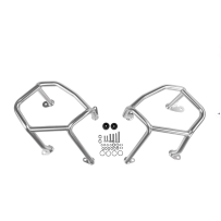Il suffit que votre moto tombe ou se renverse, comme cela peut souvent arriver en voyage, pour que le réservoir et les éléments de carénage soient endommagés. L‘ arceau de protection du carénage Touratech protège le radiateur sensible, l‘habillage et même le réservoir du nouveau boxer !